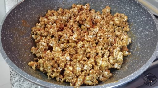 Bila gula mencair sepenuhnya, masukkan baking powder