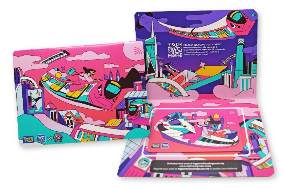- Ini adalah produk hasil kerjasama Touch ‘n Go dengan artis tempatan, ThatDania. Ada dua rekaan boleh anda pilh, sama ada Road Trip in Orange Sunrise ataupun Urban Communte in Pink Sunset. Kad ini boleh didapatkan pada harga RM29 sementara lanyard pada RM12.