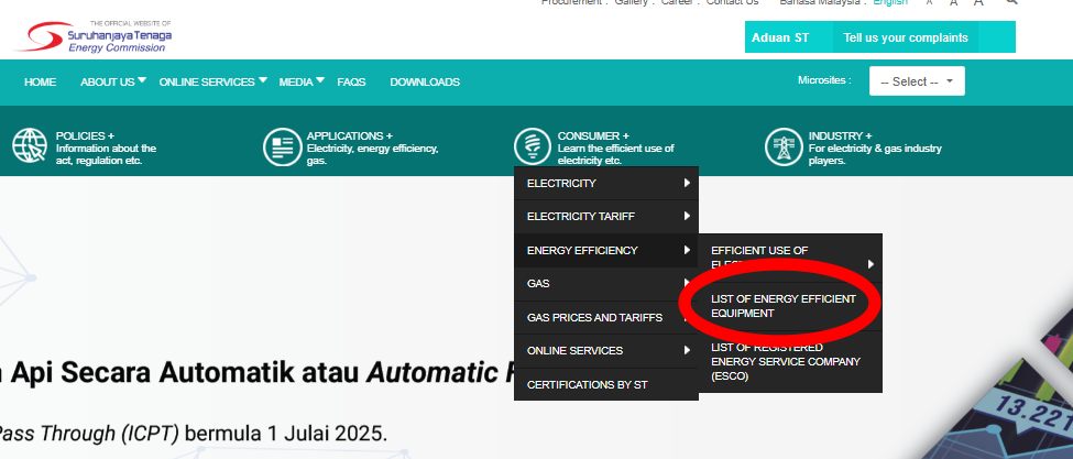 ST ada satu pengkalan data komprehensif yang mengandungi semua peralatan elektrik 5 bintang yang dijual di dalam Malaysia.