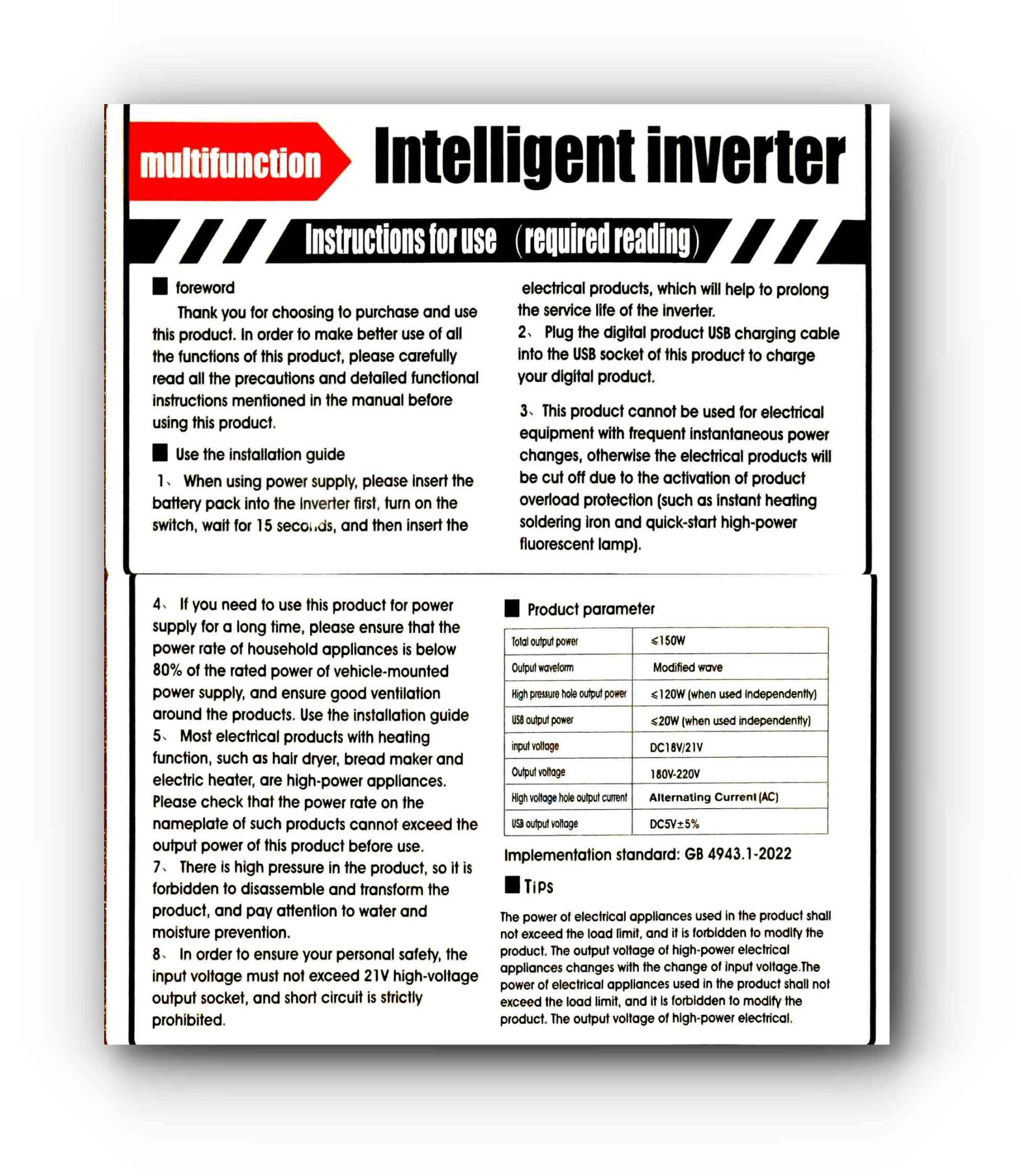 Output AC maksimum menurut helaian spesifikasi inverter ini adalah 120W yang bermakna itulah juga kuasa maksimum peralatan elektrik yang boleh disambungkan padanya. Ada satu video yang saya nampak, ia guna untuk jalankan periuk nasi elektrik dan ia adalah sesuatu yang berbahaya.