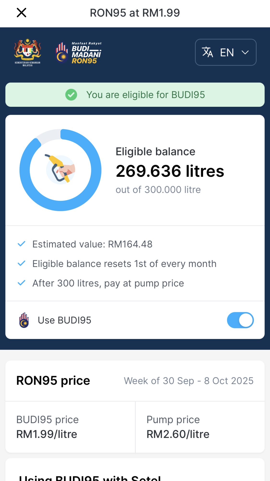 Layari laman Budi95 untuk maklumat lanjut.