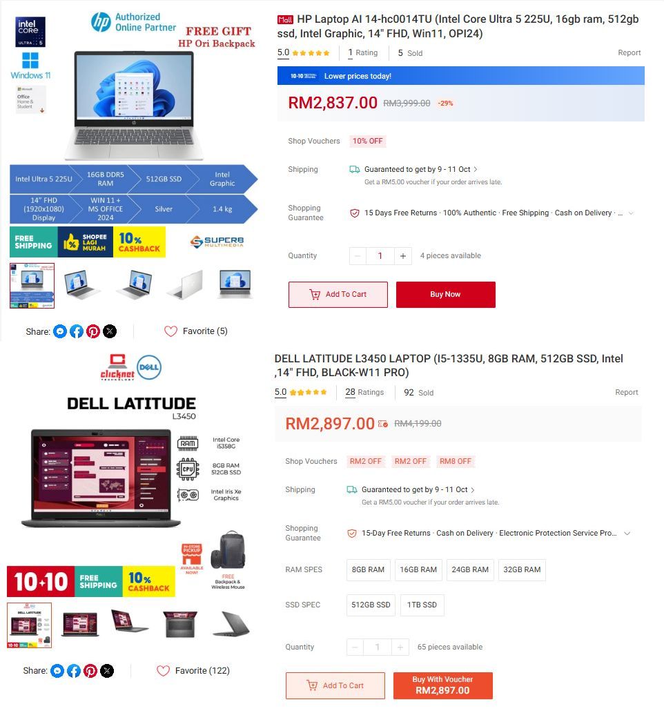 Contoh di bawah adalah dua laptop dengan harga hampir serupa. Namun, salah satu menjalankan CPU yang dua generasi kebelakang.