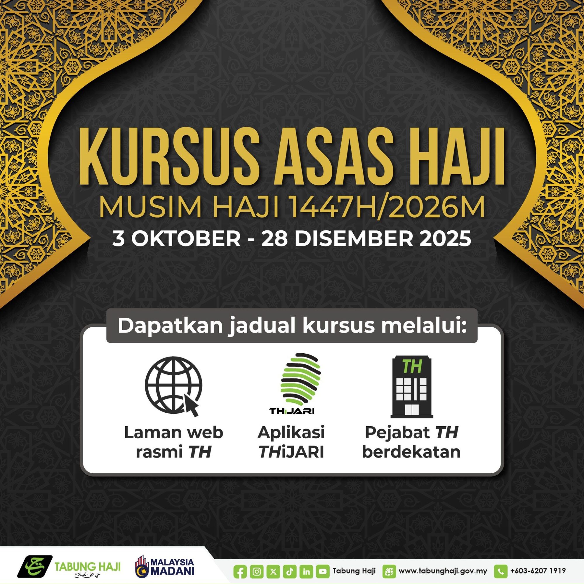 Persediaan Musim Haji 2026 sudahpun bermula. Ia ditandakan dengan permulaan Kursus Asas Haji yang mengambil tempat pada 3 Oktober hingga 28 Disember 2025. Bermula dari tempoh ini, setiap minggu akan ada kelas ibadah haji diadakan di lokasi-lokasi terpilih. Selain Kursus Asas Haji, Kursus Intensif Haji dan Kursus Khas Haji juga akan diadakan mengikut jadual.