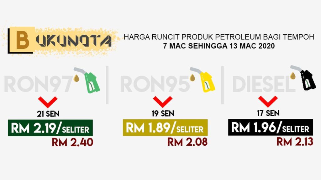06 Mac 2020 Bukan sahaja kerajaan baru, malah harga minyak pun baru Pertama kali sejak kerajaan baru harga minyak telah diturunkan dibawah paras RM 2.00/L. Bagi RON 95, harga asal…